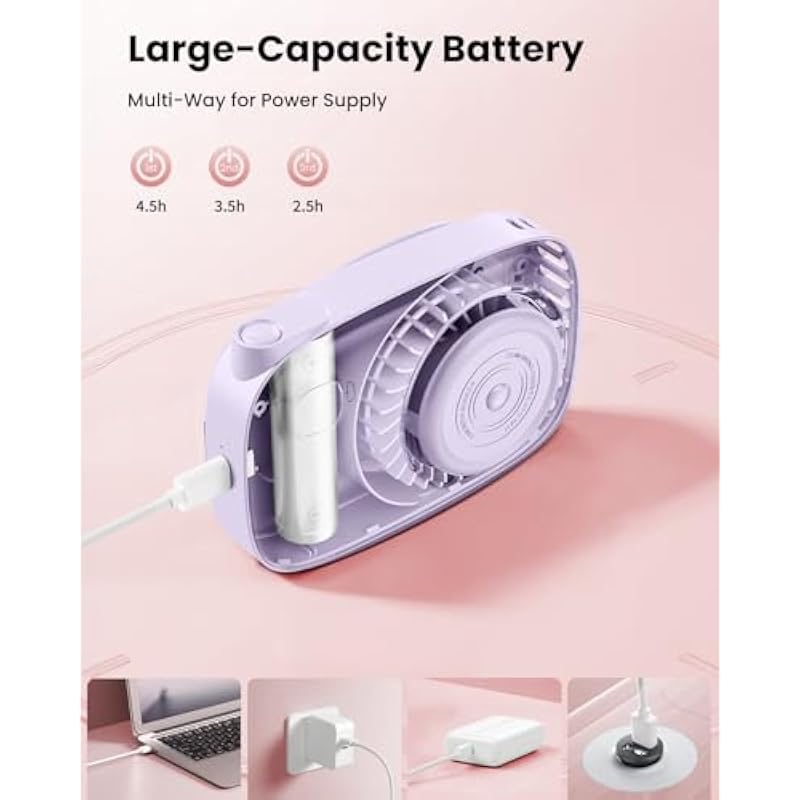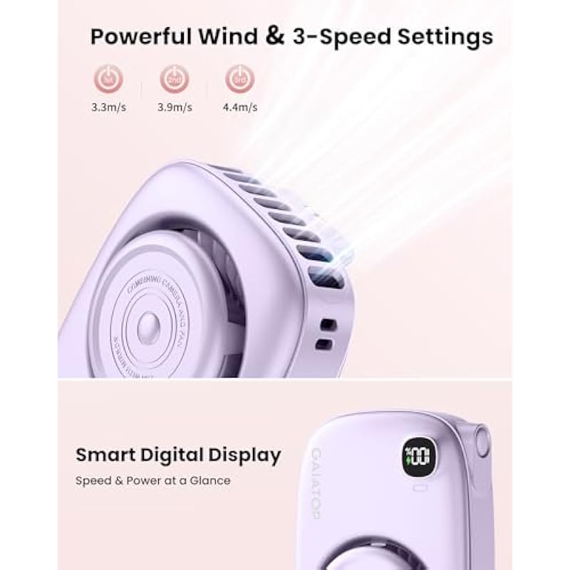Socool Belt Fan, 4 Levels Adjustable, 13,000 RPM, Super Strong Wind, Up to 25 Hours of Continuous Blowing, 4 in 1 (Stool, Neck Hang, Tabletop, Handheld), LED Remaining Indicator & Japanese Instruction