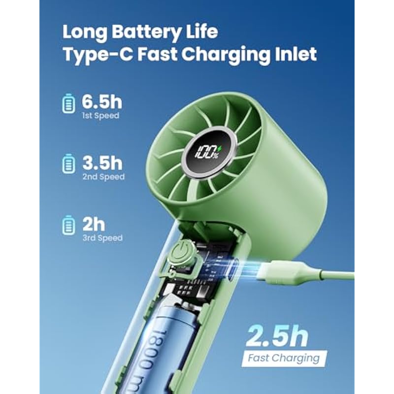 Socool Belt Fan, 4 Levels Adjustable, 13,000 RPM, Super Strong Wind, Up to 25 Hours of Continuous Blowing, 4 in 1 (Stool, Neck Hang, Tabletop, Handheld), LED Remaining Indicator & Japanese Instruction