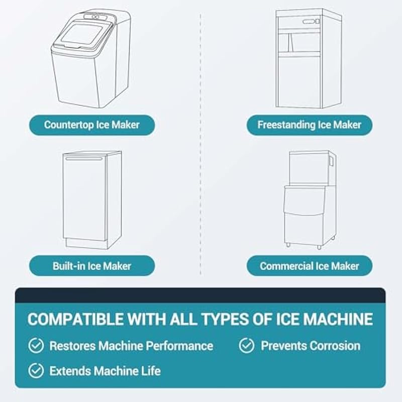 - 𝐒𝐚𝐟𝐞 𝐚𝐧𝐝 𝐍𝐨 𝐄𝐚𝐬𝐲 𝐭𝐨 𝐔𝐬𝐞 – Individually packed for each cleaning tablet. Mix 1 pack of tablet with 2 – 4 L of fresh water, enjoy fresh ice after 2 cleaning cycles. – 100% organic citric acid, one tablet for deep cleaning without residual.