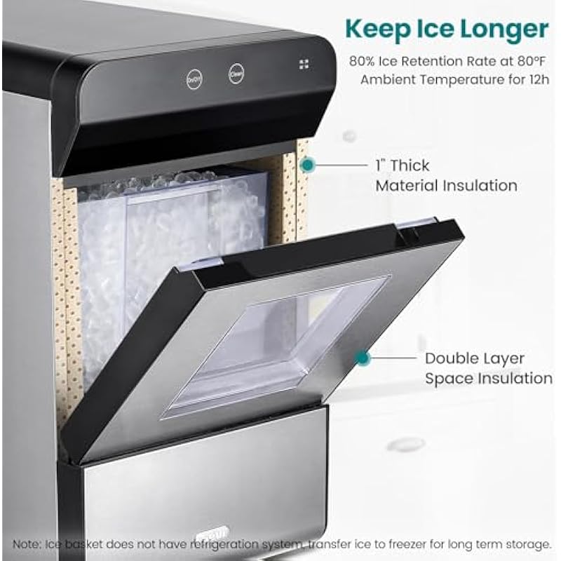 - 𝐈𝐜𝐞 𝐑𝐞𝐚𝐝𝐲 𝐀𝐥𝐰𝐚𝐲𝐬-Max 38Lbs ice in 24 hours, 4.8Lbs ice basket,2.8L/3quarts water reservoir, extra thick insulation, auto ice refill.ice is always ready for you.