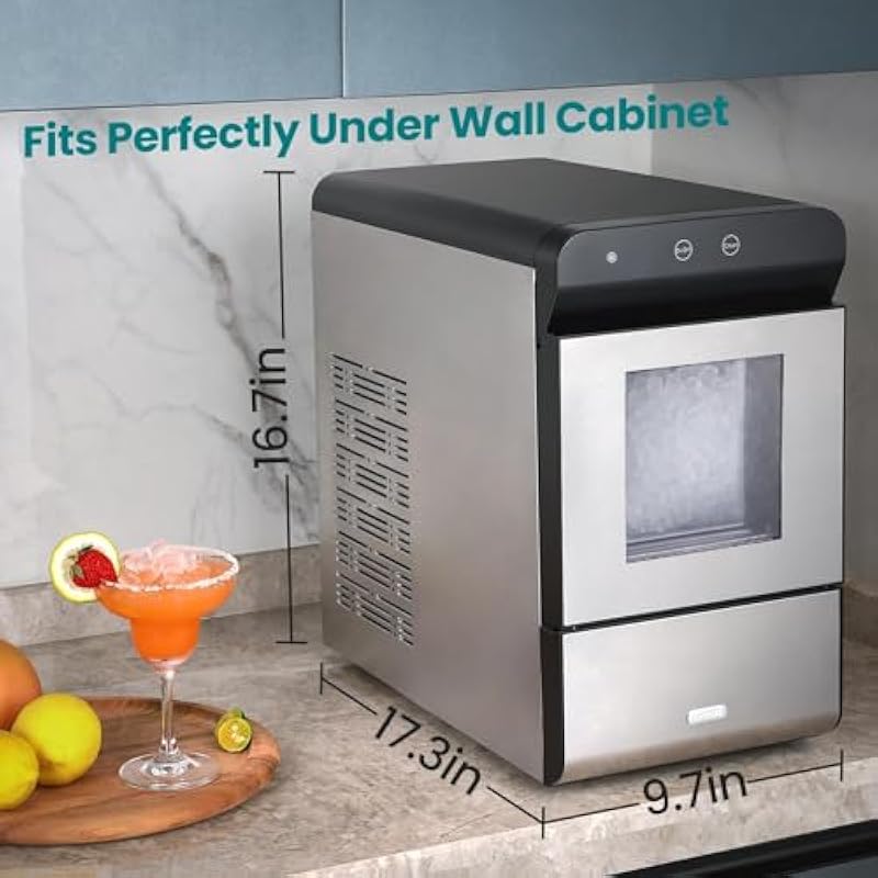 - 𝐖𝐚𝐫𝐧𝐢𝐧𝐠-Gevi Nugget Ice Maker dimensions: 17.3″ L x 9.7″ W x 16.7″ H . Please ensure your countertop has adequate space before ordering. If you have any questions during operation, refer to the tutorial videos on our flagship Amazon store or contact customer service for assistance. 𝐓𝐢𝐩:To help maintain your ice maker and minimize limescale buildup, contact our customer service after purchase for a complimentary Water Scale Inhibitor sample.