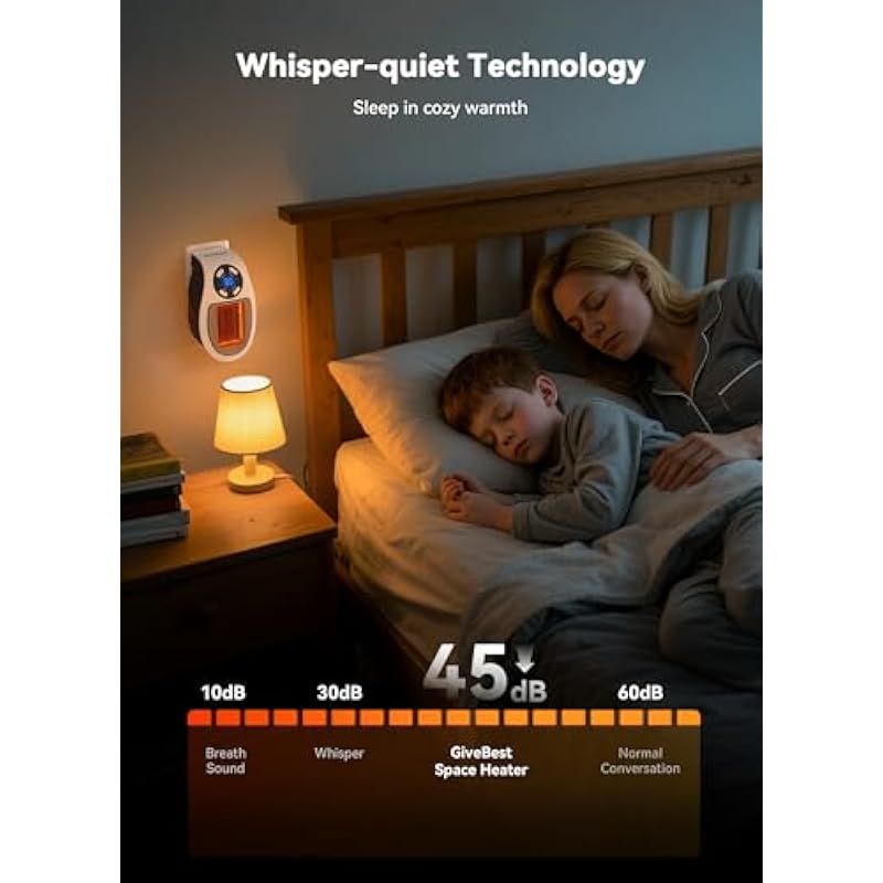 - 180° Rotatable Plug: The plug of the space heater is able to rotate 180° to accommodate power sockets in different condition and positions. If your power outlet is upside down, just rotate the plug to fit the outlet