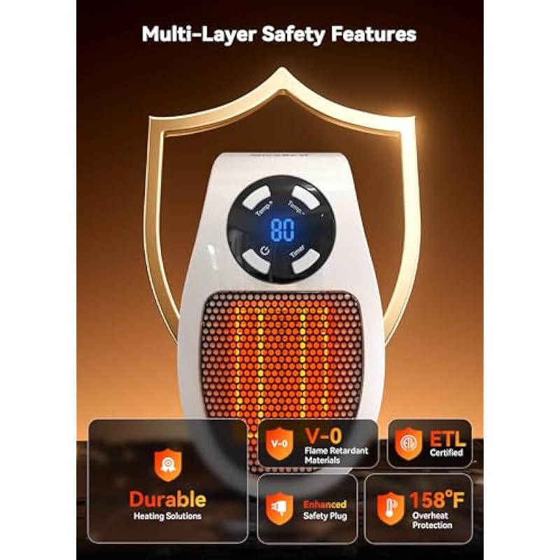 - Safety Overheat Protection: Made of quality-assured flame retardant material, this electric heater achieves zero safety hazard. Overheat protection will shut heater off automatically when overheating
