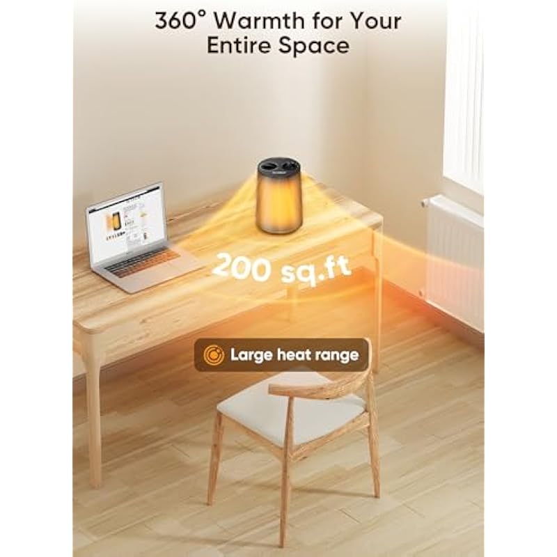 - 【Portable Personal Heater】This lightweight 6.4″ x 6.4″ x 8.9″ mini heater fits perfectly on desks, office floors, or bedside tables. Its space-saving design with integrated handle easily moves between rooms, efficiently heating up to 200 sq ft while only weighing 2.8 lbs.