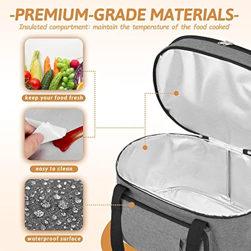 - Premium Insulation: The slow cooker bag features a high-quality insulated lining with thermal properties, making it suitable for carrying hot meals and maintaining food temperature, keeping dishes warm for hours