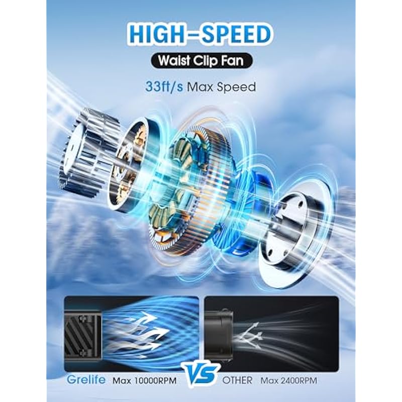 - 【5-Speed Powerful Turbine Airflow】Experience the ultimate in personalized cooling with 5-speed adjustable airflow, ranging from a gentle breeze to an invigorating blast. Equipped with a newly upgraded high-speed brushless motor and a 5-blade turbo fan that spins up to 10000 RPM and provides airflow speeds up to 33 ft/s. This powerful airflow will whisk away your body heat in a matter of seconds, keeping you comfortable anytime, anywhere