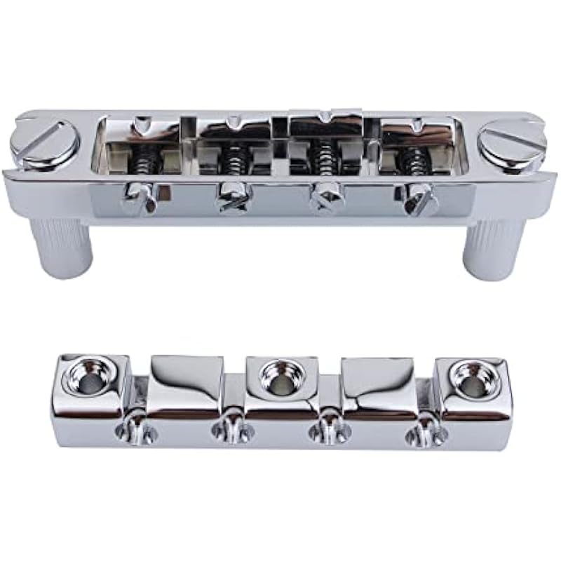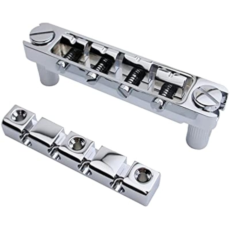 Guyker 4 String High Mass Bass Bridge with Vintage CNC Machined Steel Stop Bar Tailpiece, Chrome