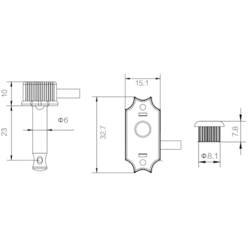 - Gear Ratio – 1:15, designed to fit modern 9mm headstock holes. Please check the parameter drawing in the attached pics before placing your order.