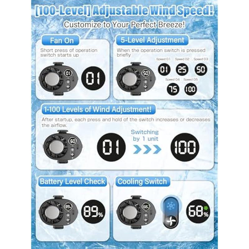 - 𝐅𝐥𝐞𝐱𝐢𝐛𝐥𝐞 𝐌𝐨𝐝𝐞𝐬: Two modes available. One offers 1–100 wind speed adjustment for precise control, while the other has 5 preset levels for quick selection.