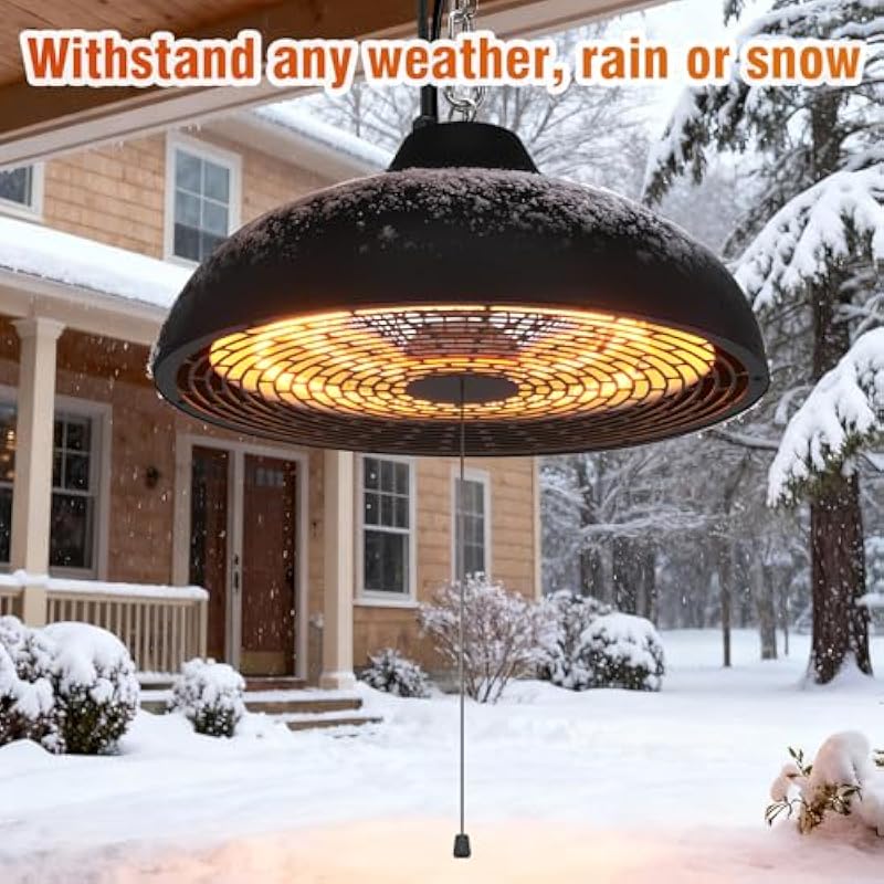 - 【ENVIRONMENTALLY FRIENDLY & SAFETY】Infrared heater produces no noise, odors or fumes. Beside, If the patio electric ceiling heater is overheating, it will automatically shut off.