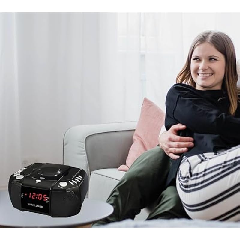 - Digital Clock with Dual Alarms : Dual alarm setting (wake up by buzzer or radio) is easy and the alarms are independent, so both bedmates need only this one alarm clock.