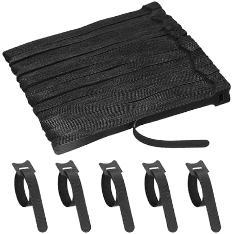 HARFINGTON 126pcs Reusable Cable Ties, 8 x 1/2″ Fastening Cable Straps, Adjustable Cord Wire Management Organizing Self Gripping Ties Hook & Loop for Office, Home, Data Centers, Black