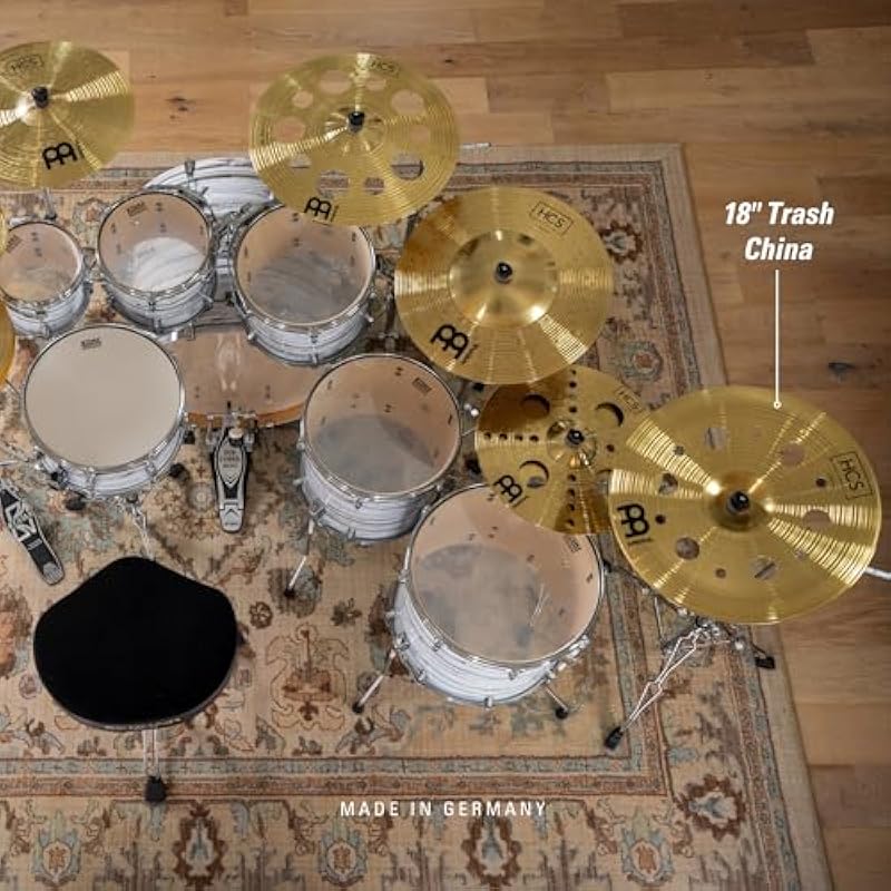 - WHAT’S IN THE BOX: includes one 18″ trash china cymbal; this china cymbal has a bold, trashy sound that’s perfect for accents and adding energy to your playing; hole cut-outs boost trashy tone even more and reduce sustain for a quick, explosive sound
