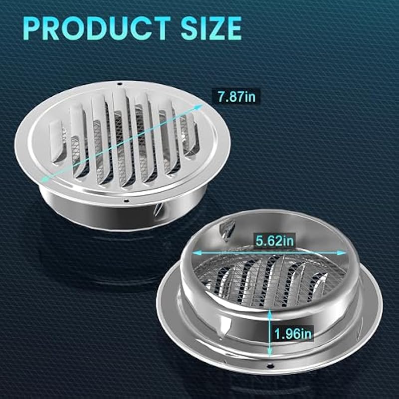 - Specification: Size: 33 x 90 x 60 mm/1.3 x 3.5 x 2.4 inch(H*OD*ID); Fit Hole Diameter: 60 mm -69 mm/2.4 Inch -2.7 Inch; Material: Polypropylene; Finish: Polishing; Packing List: 4 Pcs x Round Vent Cover