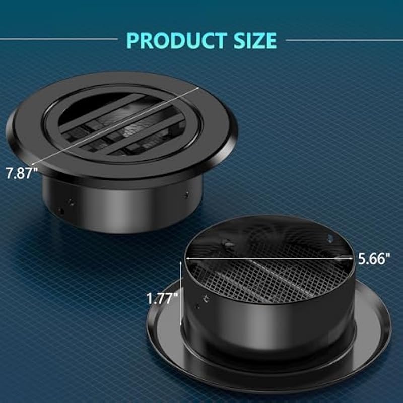 - Air Vent Cover: HG Power offers a versatile round vent cover that comes in a 5.66“ diameter opening size, making it compatible with all 6-inch diameter ducts. The vent has a built-in mesh screen to keep out unwanted debris and is made of high-quality ABS material that is waterproof, rust-resistant and easy to clean.