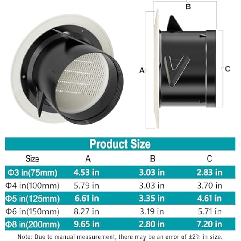 - Premium Material: Constructed from high-quality ABS material, the 6 inch duct vent is both durable and easy to maintain, ensuring long-lasting performance