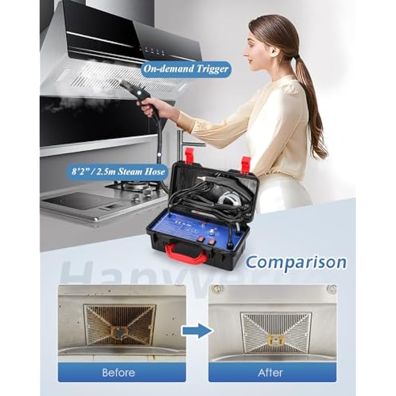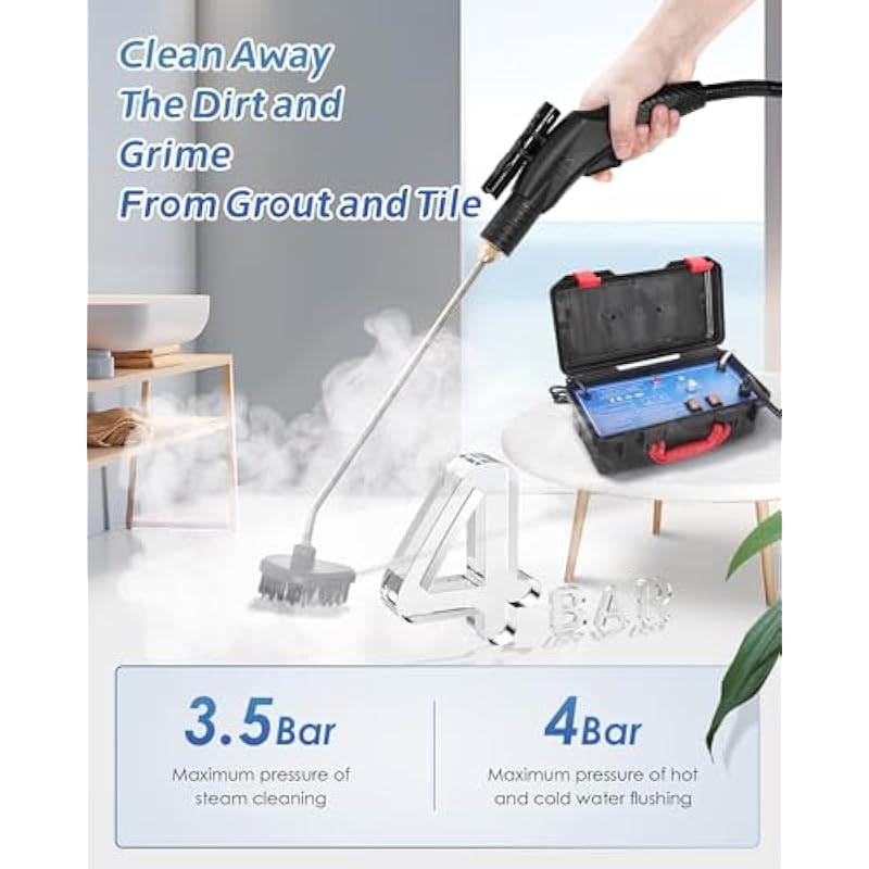 - [1700W HIGH POWER] The high temperature steam will be ready in 20 seconds, up to 230℉, melting the greasy dirt and clean with the power of 3.5Bar pressurized natural steam.