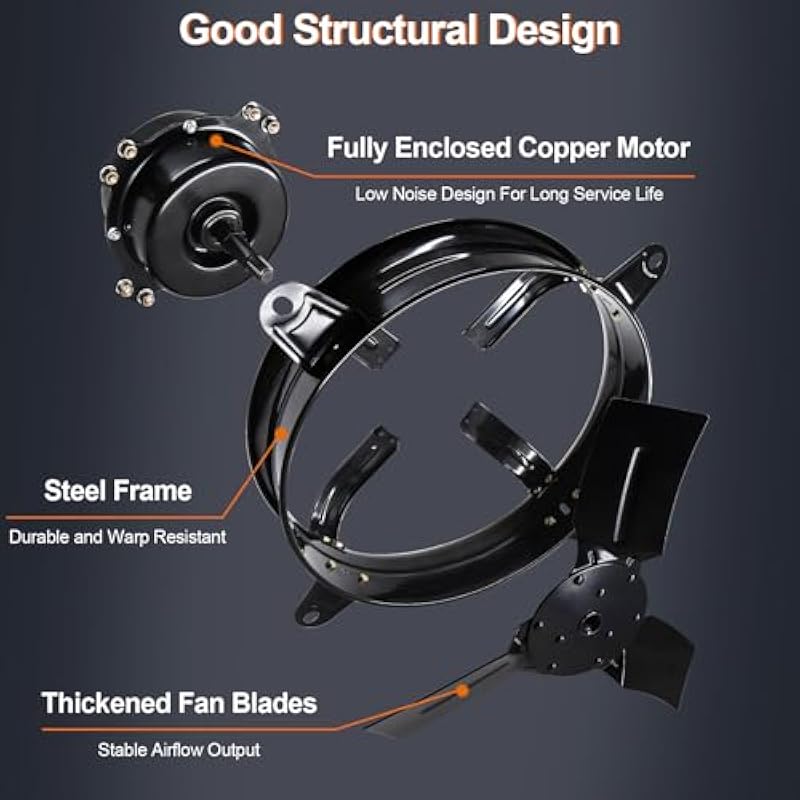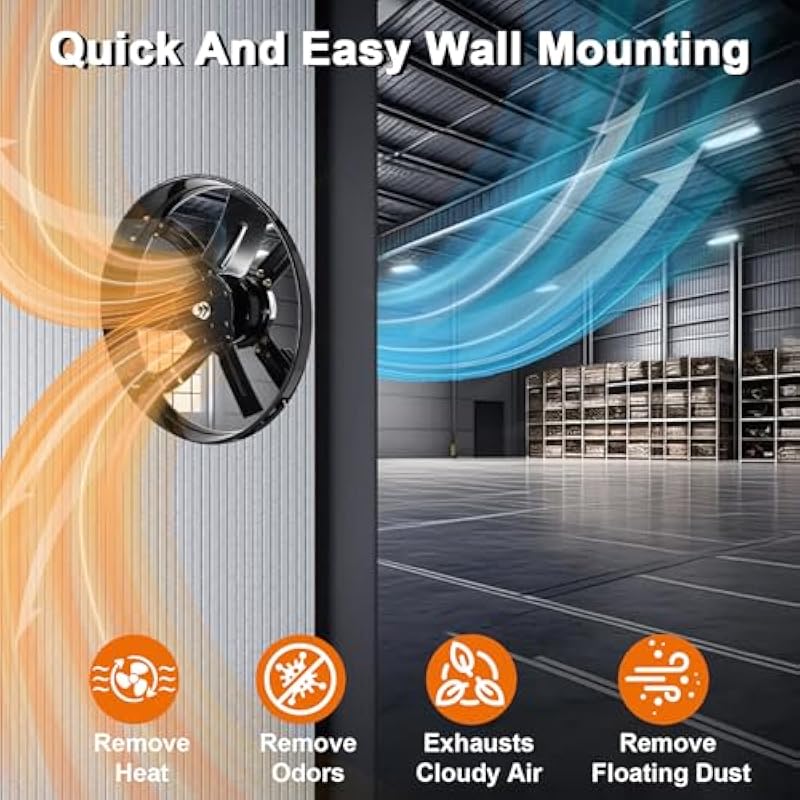 - Quiet Operation: With a maximum speed of 1080 R/min, the exhaust fan is designed to provide excellent performance, ensuring that your space is ventilated quickly and efficiently and that you can say goodbye to stuffy rooms, and despite the strong airflow, it operates quietly so that you can enjoy a peaceful and noiseless environment, making it ideal for exhausting and de-dusting warehouses, garages, greenhouses, and workshops