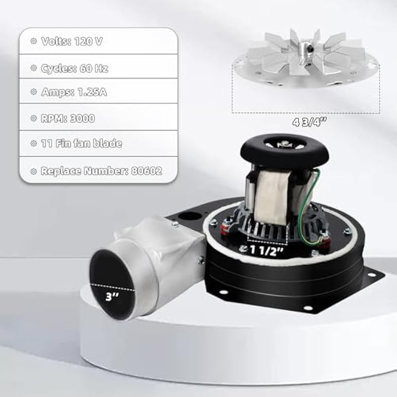 - The original 80602 exhaust blower Motor will make a loud squeak when used after years of wear and tear, pellet stove doesn’t burn very well and your old fan is causing the stove to overheat. Replacing with a new Combustion Exhaust Blower Motor will give you improvement, it blows quieter, has more airflow and distributes warm air well