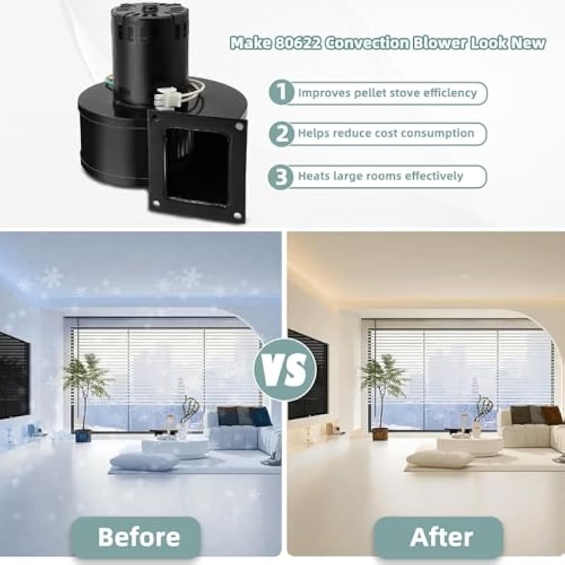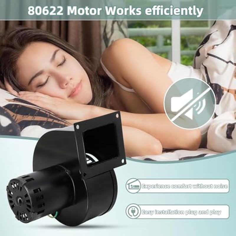 - 80622 Convection Blower Specifications: 115V, 60Hz, 1.5A, 3000RPM, Flange Measures 4 1/2″ x 4″, mounting holes measure 3 3/8″ x 3 3/4″ center to center. ashley stove 80622 material quality, Top Quality Sealed Bearing Motor Replacement, durable, quieter operation, better combustion, less ash accumulation, higher efficiency, more heat, Safe and reliable use