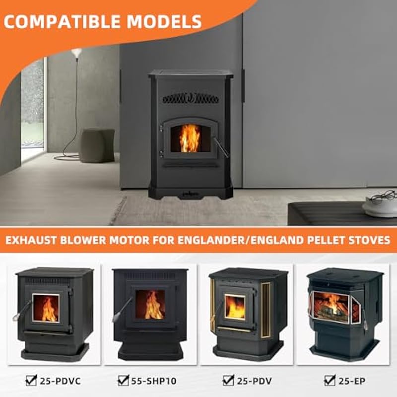 - 【 Compatible Models】PU-076002B Blower Replacement for Englander Pellet Stoves models: 10-CDV, 10-CDVG, 10-CDVL, 10-CDVP, 49-SHC22, 49-TRC22, 49-SHC22G, 49-SHC22L, 49-SHC22P, 49-TRC22G, 49-TRC22L, 49-TRC22P, 25-CAB80, 25-CB120, 25-CBEP, 25-CBPAH, 25-EP, 25-EPI, 25-IP, 25-PAH, 25-PDV, 25-PDVC, 25-PDVE, 25-PDVP, 25-PI, 25-SSP01, 25-PAF, 25-IPM, 25-IPS
