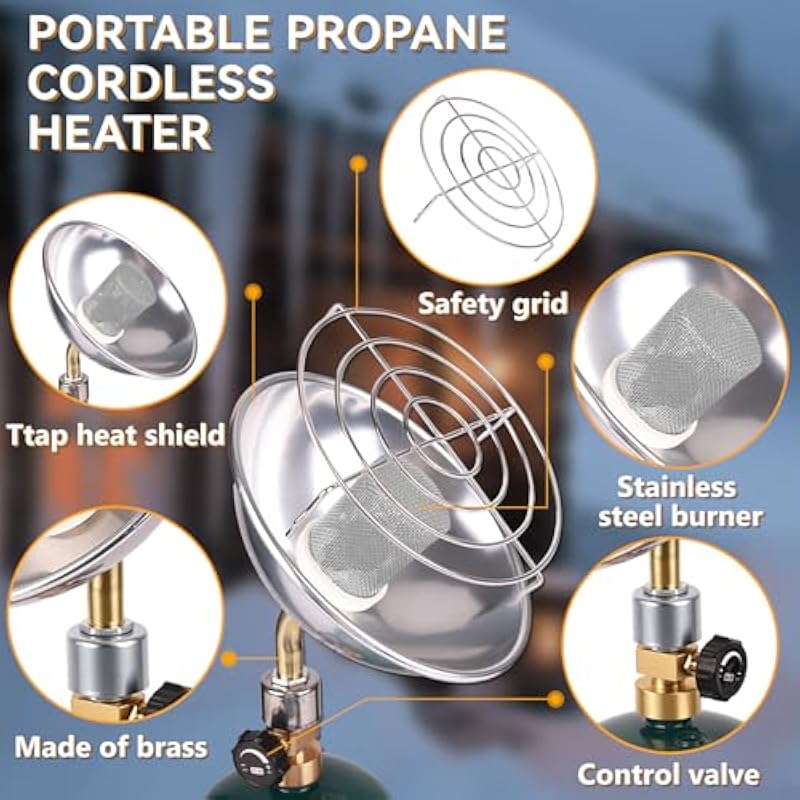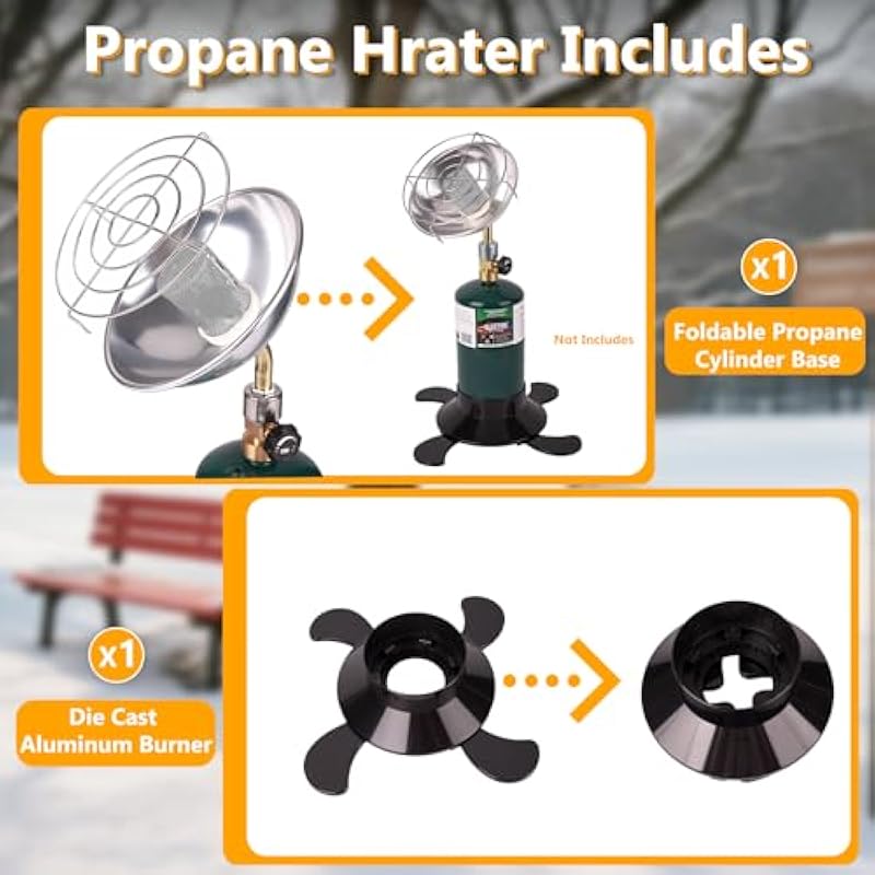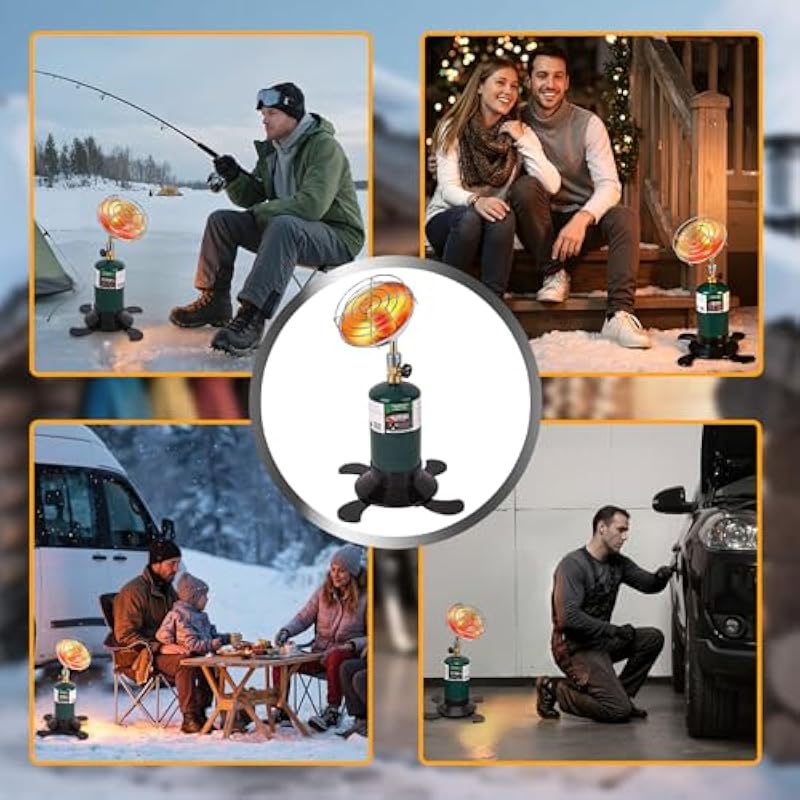 - Adjustable Temperature Camping Heater: Stay warm indoors and outdoors with our portable propane radiant space heater. By rotating the control knob clockwise, allowing you to fine-tune the temperature from gentle warmth to higher heat levels to meet a variety of comfort needs. Whether you’re in your garage, tailgating, ice fishing, hunting, camping, traveling, hiking, or enjoying any outdoor activity, this portable propane heater provides reliable, convenient heat quickly, ensuring you’re comfortable in any environment.