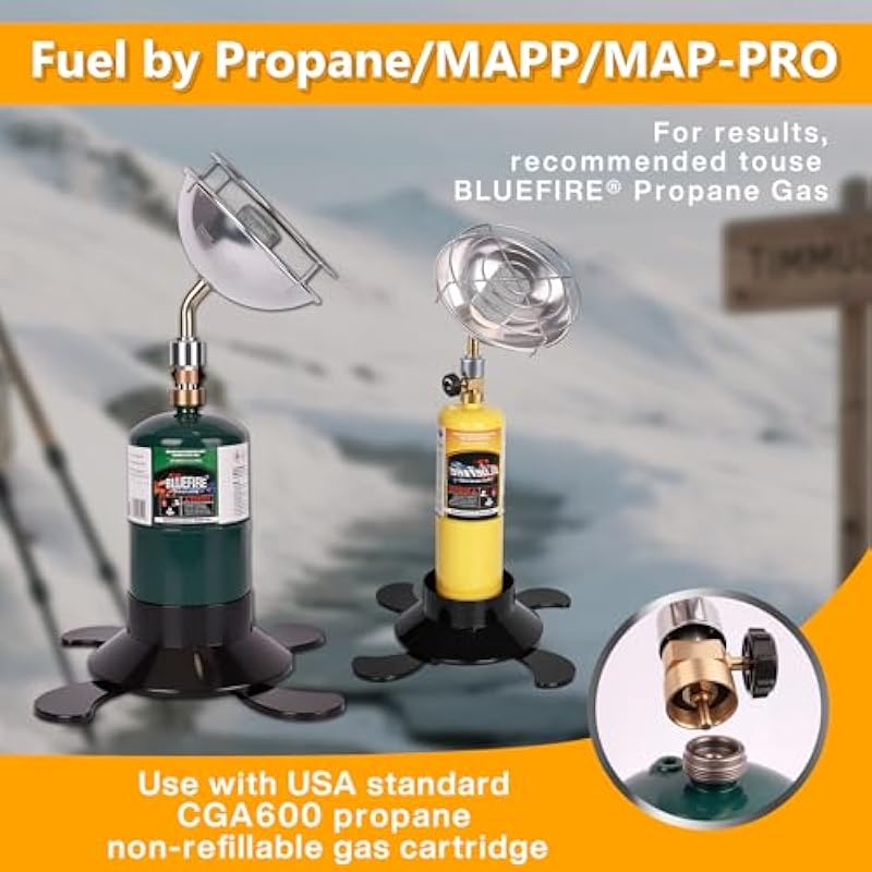 - Fuel Compatibility (Sold Without Tanks): Please note that propane cylinders and tanks are NOT INCLUDED.The camping heater operates on 1-pound propane tanks, providing the perfect amount of warmth without the need for electricity. For best results, we recommend using the Hotdevil’s 1lb Bluefire propane camping gas cylinders. Our customer service team is always available to assist with any issues. This heater makes a fantastic gift for outdoor enthusiasts and is perfect for family outdoor activities.