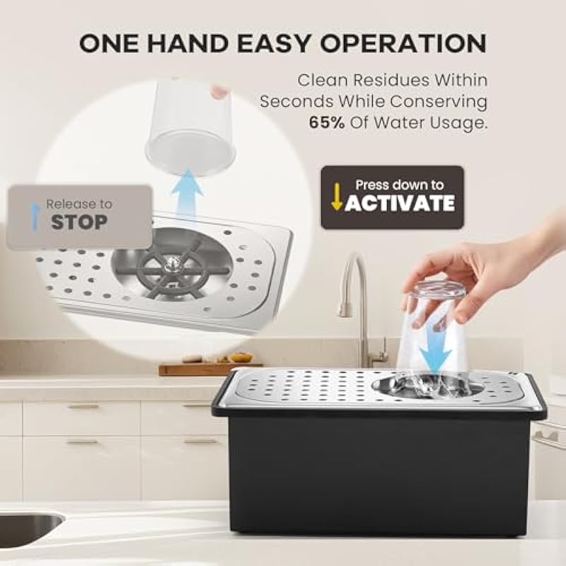 - [Easy and efficient operation] Simply press your cup down to activate the water flow and release to stop—it’s that easy! Clean residues within seconds while conserving water. Perfect for winter use, the glass rinser for bar keeps your hands from freezing during cleaning