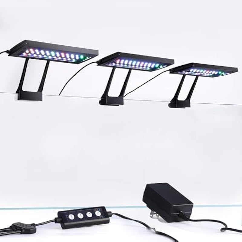 - SYNCHRONIZED CONTROL: Can adjust the brightness, color and spectrum mode of 2 or 3 lights (such as 24/7 simulating sunrise and sunset) through a single controller, avoiding the tediousness of operating multiple devices independently. It is especially suitable for medium and large landscape fish tanks, irregular shapes aquarium, and multiple small tanks