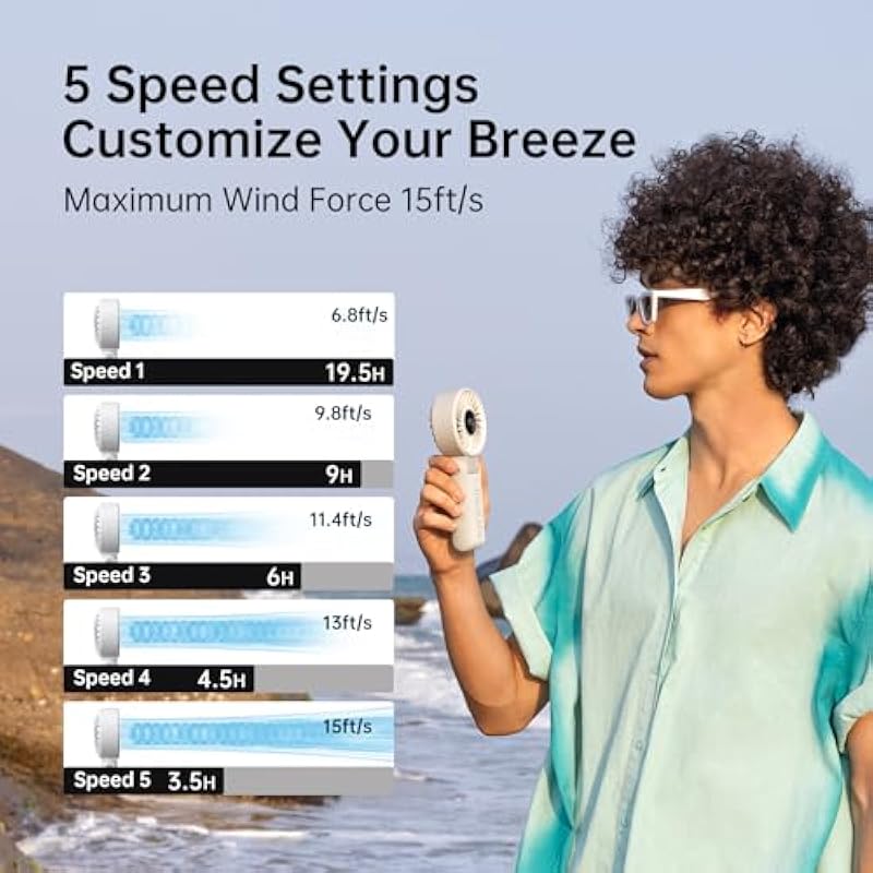 Socool Belt Fan, 4 Levels Adjustable, 13,000 RPM, Super Strong Wind, Up to 25 Hours of Continuous Blowing, 4 in 1 (Stool, Neck Hang, Tabletop, Handheld), LED Remaining Indicator & Japanese Instruction