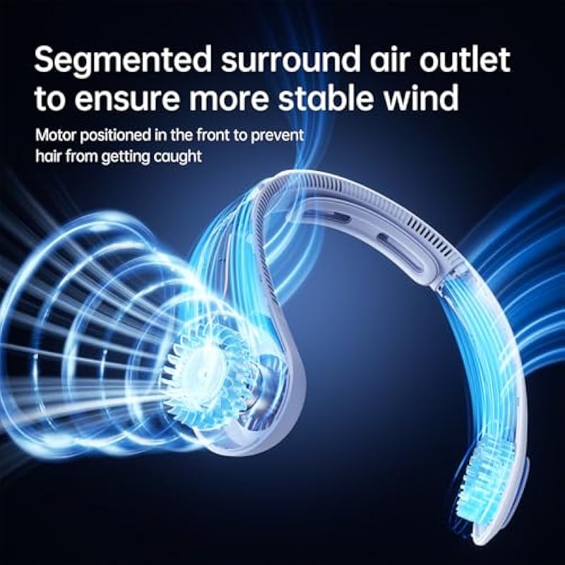 Neck Fan, Neck Fan, Portable Fan, Neck Fan, Cooling Plate, Semiconductor Cooling, Air Conditioner, Lightweight, Quiet, LED Included, Temperature Display, Type-C Rechargeable, 10,000 mAh