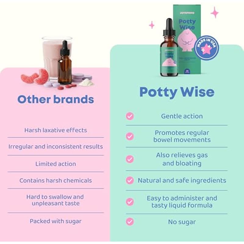 JoySpring Potty Wise – Gentle Digestive Support for Kids – Promotes Healthy Digestion with Senna & Elderberry – Vegan, Gluten-Free, Sugar-Free (2 fl oz) 60 Servings