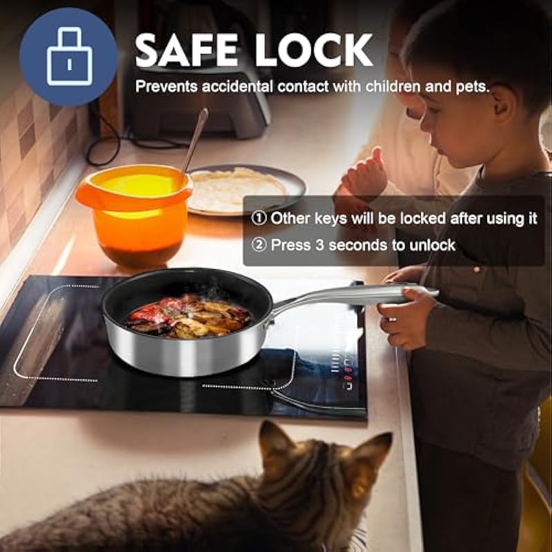 - 【Cook Smart and Safe!】Designed with your safety in mind, this electric cooktop 2 burners features a 99-minute timer, auto shut-off, child safety lock, and high-temperature warning, giving you peace of mind while you whip up delicious meals. Whether you’re sautéing veggies or simmering sauces, the intuitive controls make cooking a breeze. Enjoy the freedom to focus on flavors without worry.