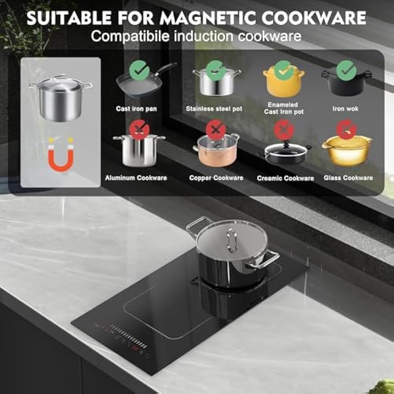 - 【Higher Power, Faster Heating】This 3500W high-powered induction cooker operates on 220-240V and requires professional wiring for installation. Because it’s so high powered, it doesn’t come with a plug. Designed for efficiency, it works exclusively with iron cookware—just test your pots with a magnet to ensure compatibility. It’s worth mentioning that our package comes with a free pot for induction cooktops!