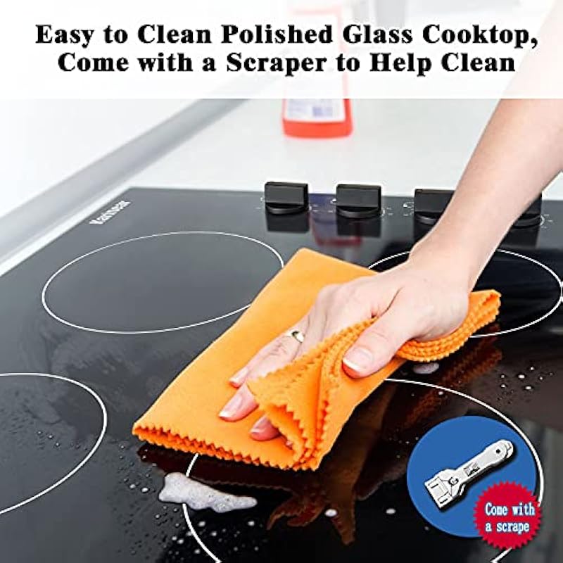- 【Safe Electric Radiant Cooktop 】The electric stove top is specially designed for safety, having various safety protection functions, such as residual heat indicator, which remind you that the temperature is too high, do not touch it; Over-heating Protection, automatic safety shut off function, when it detects that the internal temperature of the 24″ electric stove top is too high, it will automatically shut down.