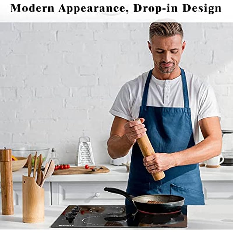 - 【24″ Electric Cooktop with Knob Control 】No complicated buttons, easy to operate and use. It is very suitable for the elderly, suitable for people with poor eyesight, not only is it easy to use, but the feeling of rotating the button by hand is more reliable. With electronic knob, the electric stove top 4 burner can prevent children or family pets, cats from accidentally touching the switch button, which is safer than touch screen button.
