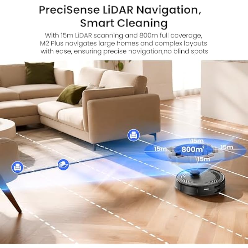 - 【LiDAR Navigation & Multi-Floor Mapping】 With advanced 360° LiDAR navigation, Lefant M2 Plus quickly scans and accurately maps your home for efficient cleaning, automatically creating multi-level maps, and intelligently planning cleaning routes to minimize unnecessary repetition or missed spots