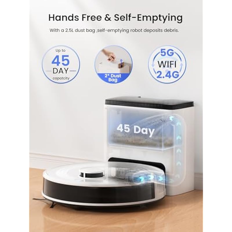 - 👍【Dual-Band WiFi Robot Vacuum (2.4G/5G) 】– Connect to one of the WiFi ensures stable connectivity for uninterrupted cleaning. 2.4G covers whole home, while 5G delivers high-speed control. No more dropouts! The system continuously monitors network conditions, optimizing performance in real-time to avoid interference and congestion. Perfect for busy households with multiple devices, it delivers reliable whole-home coverage while maintaining peak speeds where you need them most.