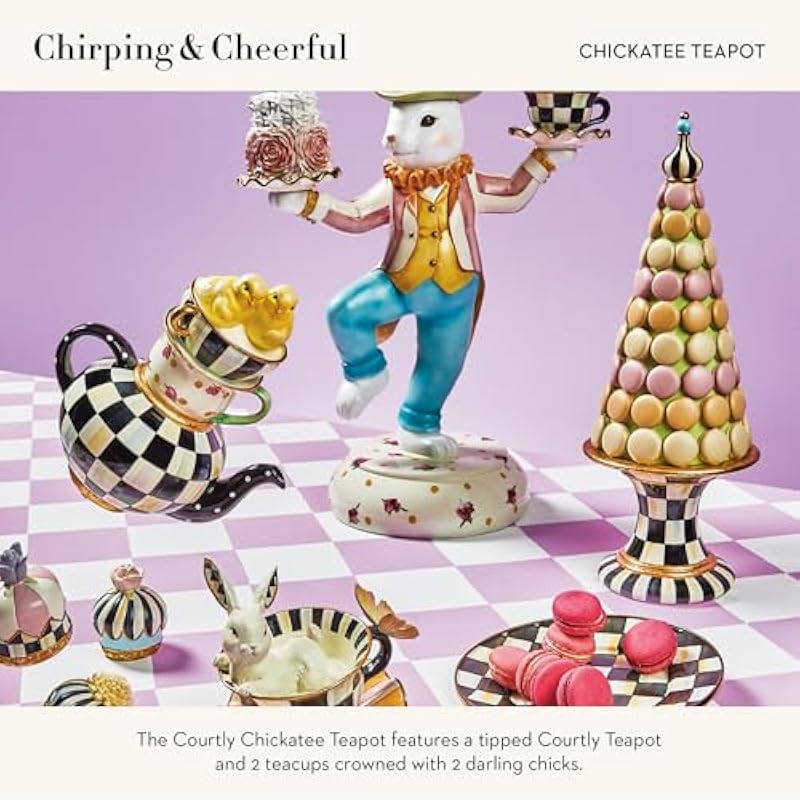 - UNIQUE TEAPOT DECORATION: The MacKenzie-Childs Courtly Chickatee Teapot is a stack of springtime sweetness. This adorable resin piece creates cute decor for a tea-party centerpiece or serves as a decorative teapot accent in the living room or kitchen.