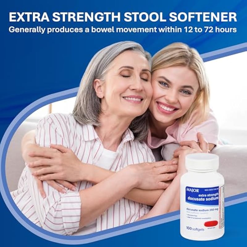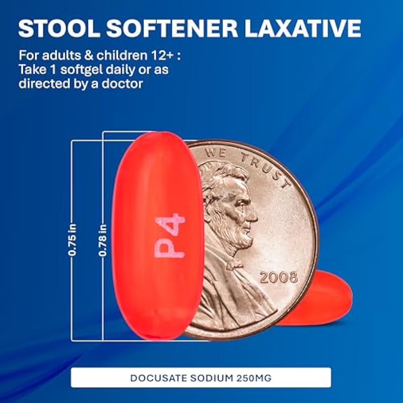 - STOOL SOFTENER LAXATIVE – Docusate Sodium 250 mg softgels help ease occasional constipation by gently softening dry, hard stools, making bowel movements more comfortable and natural within 12 to 72 hours.