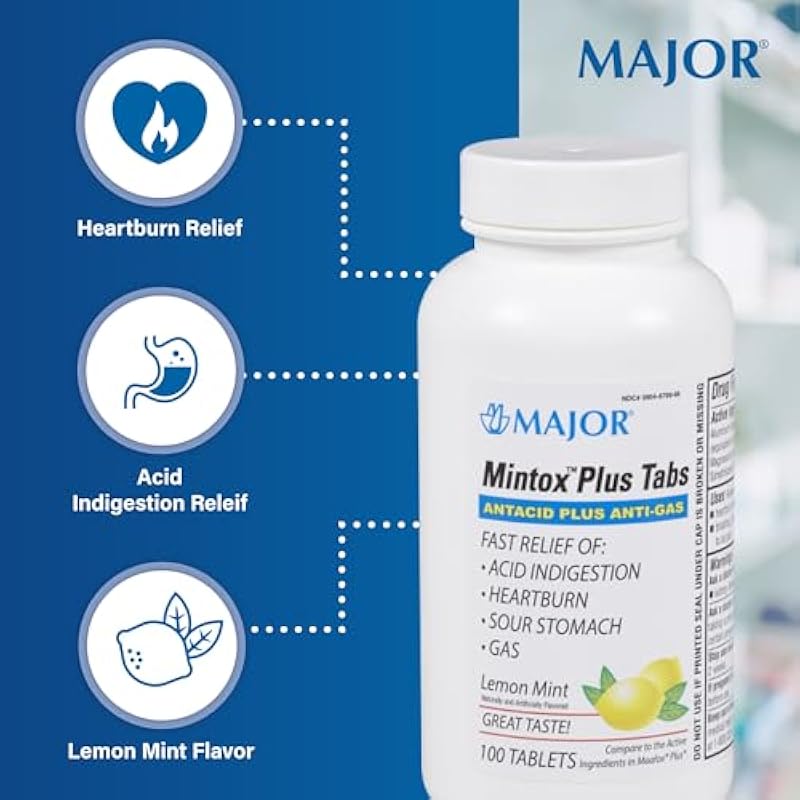 - ANTACID TABLETS: Major Mintox Plus Tabs help provide fast relief from heartburn, sour stomach, acid indigestion, bloating, pressure, and discomfort commonly referred to as gas.
