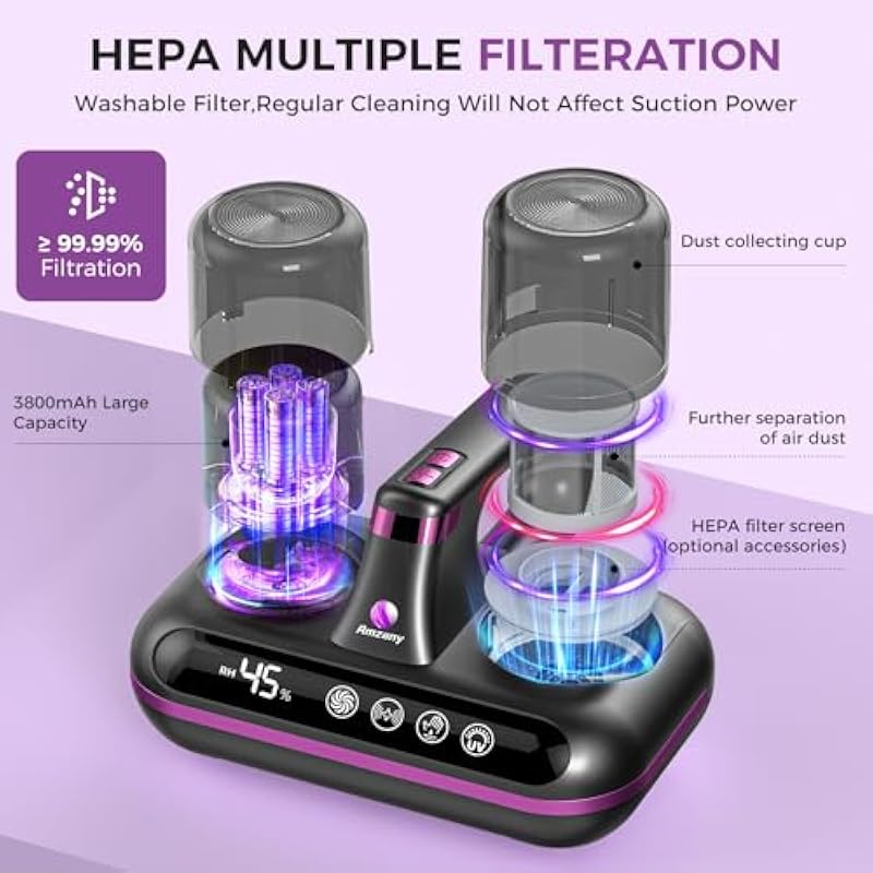 - 【EFFICIENT CLEANING PERFORMANCE】Amzany The most powerful vacuum cleaner up to 16Kpa suction, 200W stable power, easy to pick up fine dust deep in the mattress quickly.