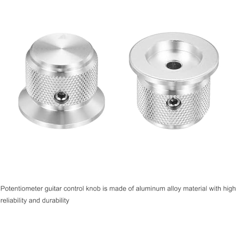 - Outstanding Durability: This volume tone control knob is made of aluminum alloy, which is not only lightweight but also has excellent durability, ensuring its long-term use. Great adaptability: This potentiometer knob has a standard 3/16″ (4mm) mounting hole that can easily adapt to most guitars, bass and other musical instruments, and a wrench is included to make installation more convenient.