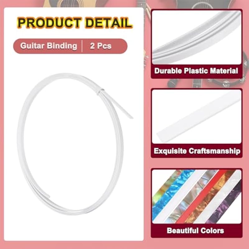 - Are there any advantages of the product? 1. Made of durable plastic material, the binding purfling strips with exquisite craftsmanship are sturdy and not easy to break, easy to use. 2. These guitar binding strips are perfect to use as a replacement for old guitar binding tape, adding a new elegant appearance to your guitar.