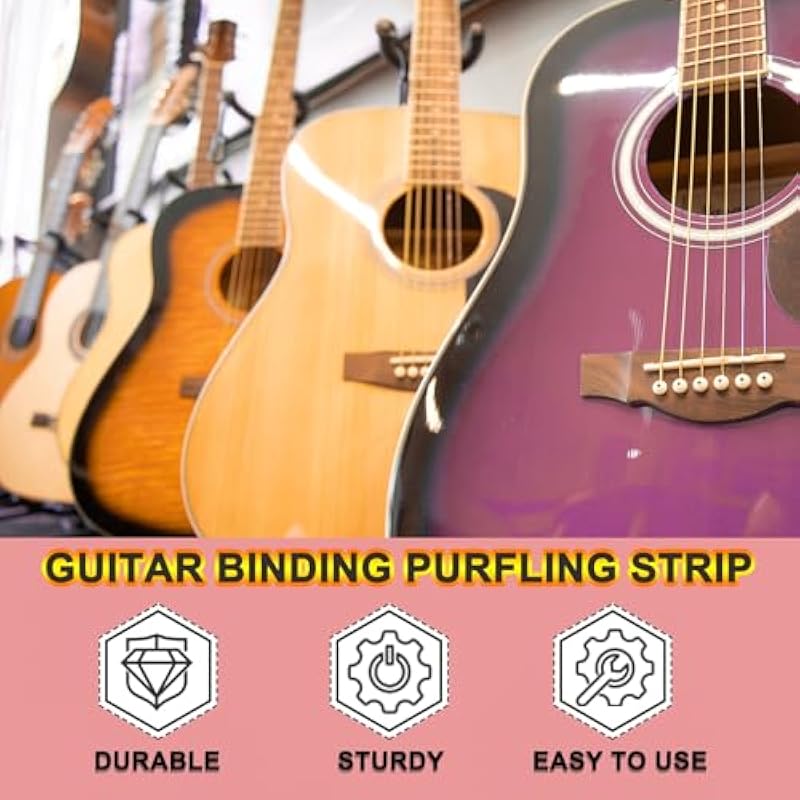 - What is this? Our guitar purfling strips are suitable for wooden guitars, electric wooden guitars, or classical guitars. They are mainly used to decorate the edge of the guitar to prevent and protect the guitar from accidental scratches.