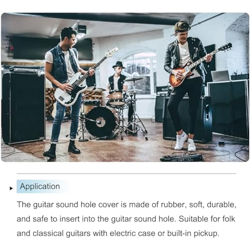 - The guitar sound hole cover is made of rubber, soft, durable, and safe to insert into the guitar sound hole. Suitable for folk and classical guitars with electric case or built-in pickup.