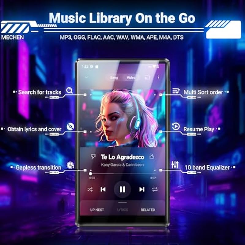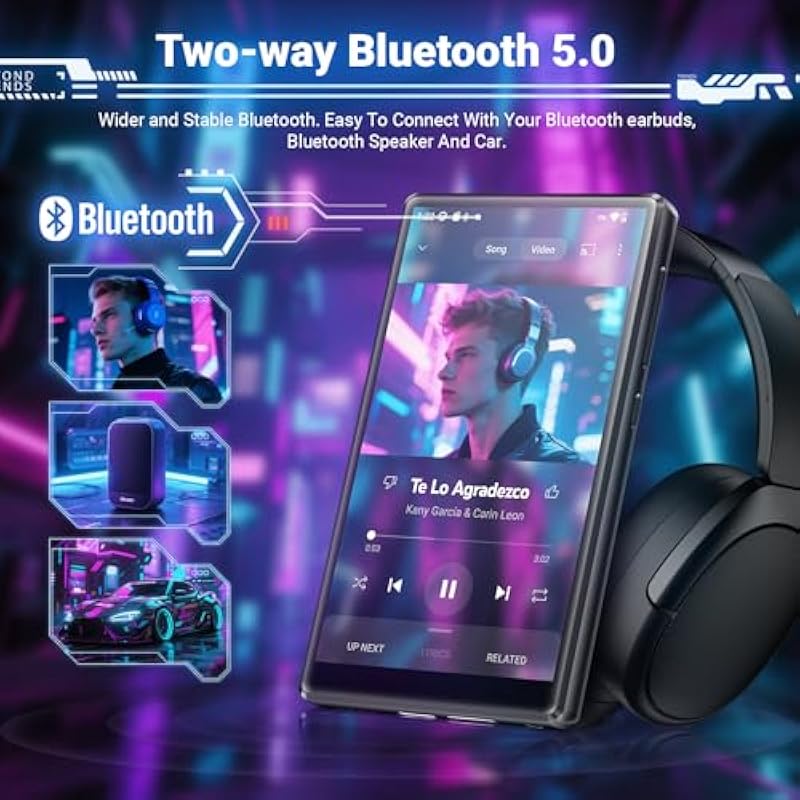 - 「 Dual Connection 」:MP3 player adopts the new generation of Bluetooth 5.0 technology, which improves the transmission speed by 2 times, the connection distance is farther and the anti-interference is stronger. Meanwhile, WIFI supports 2.4GHz+5GHz dual band, automatically selecting the better network. 5GHz band has less interference, wireless freedom and worry-free connection.