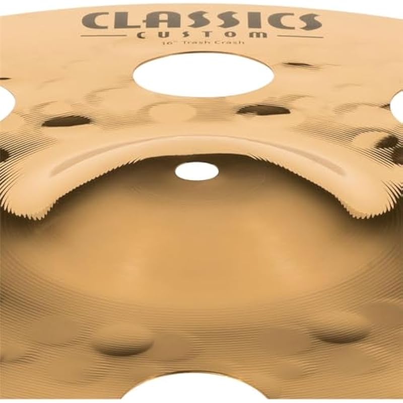 - WHAT’S IN THE BOX: one 16″ trash crash cymbal; hole cut-outs give the cymbal a trashy, dry tone and shorten its sustain; great for fast fills with extra bite, crash-riding, or cymbal stacking