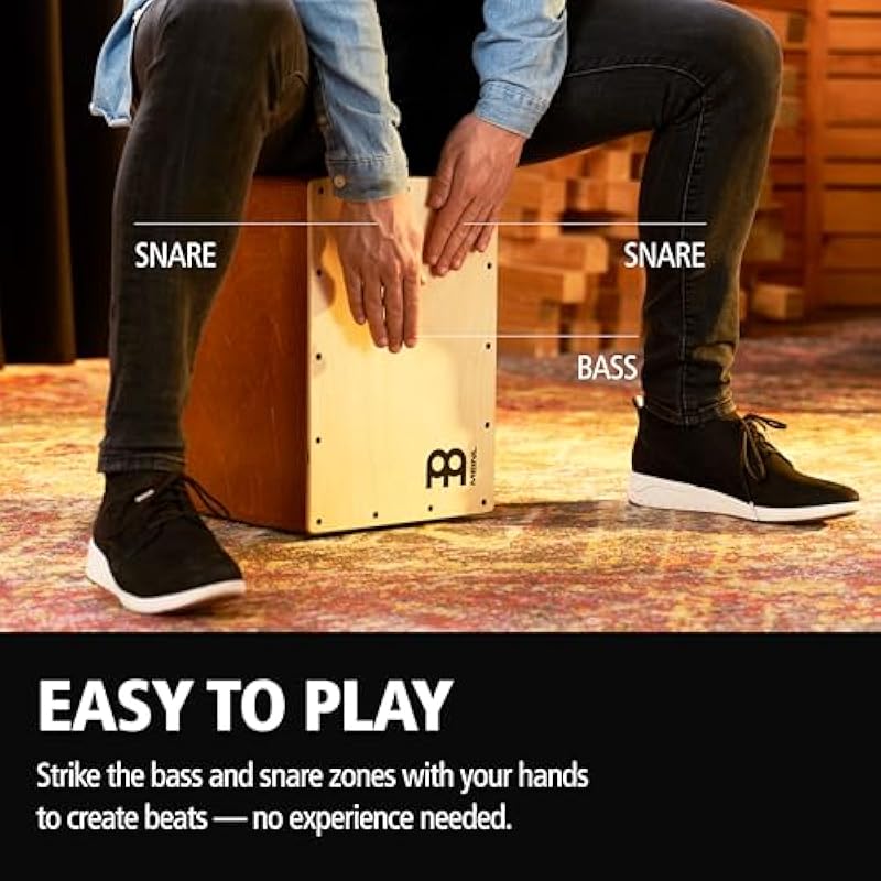 - LEARN TO PLAY IN MINUTES: just sit down on it and tap the front with your hands to create bass and snare sounds—no experience needed; a perfect instrument for building the confidence to play percussion