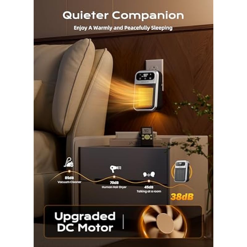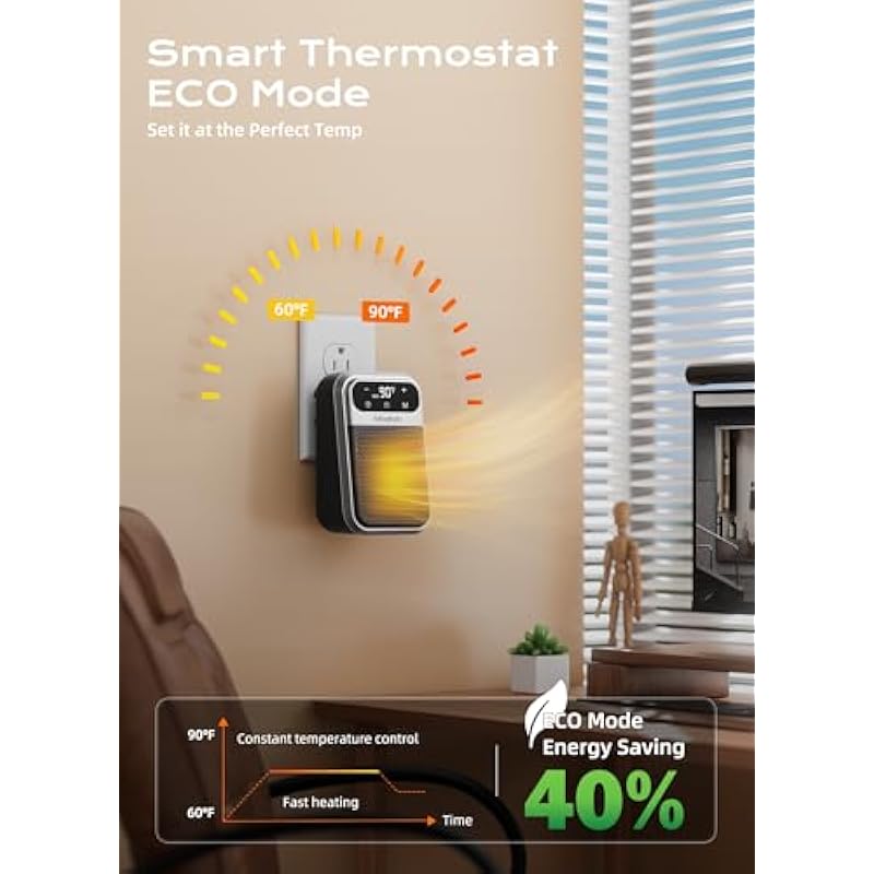 - 【Energy Efficient & Library-Quiet】Slash Bills, Not Zzz’s! This brainy plug-in wall space heater attacks energy waste with ninja stealth. ECO Mode + adjustable thermostat maintain perfect temps (<35 dB) – quieter than rustling leaves! Binge films or conquer spreadsheets without noisy interruptions. Finally, warm savings that won’t wake babies or ruin naps.